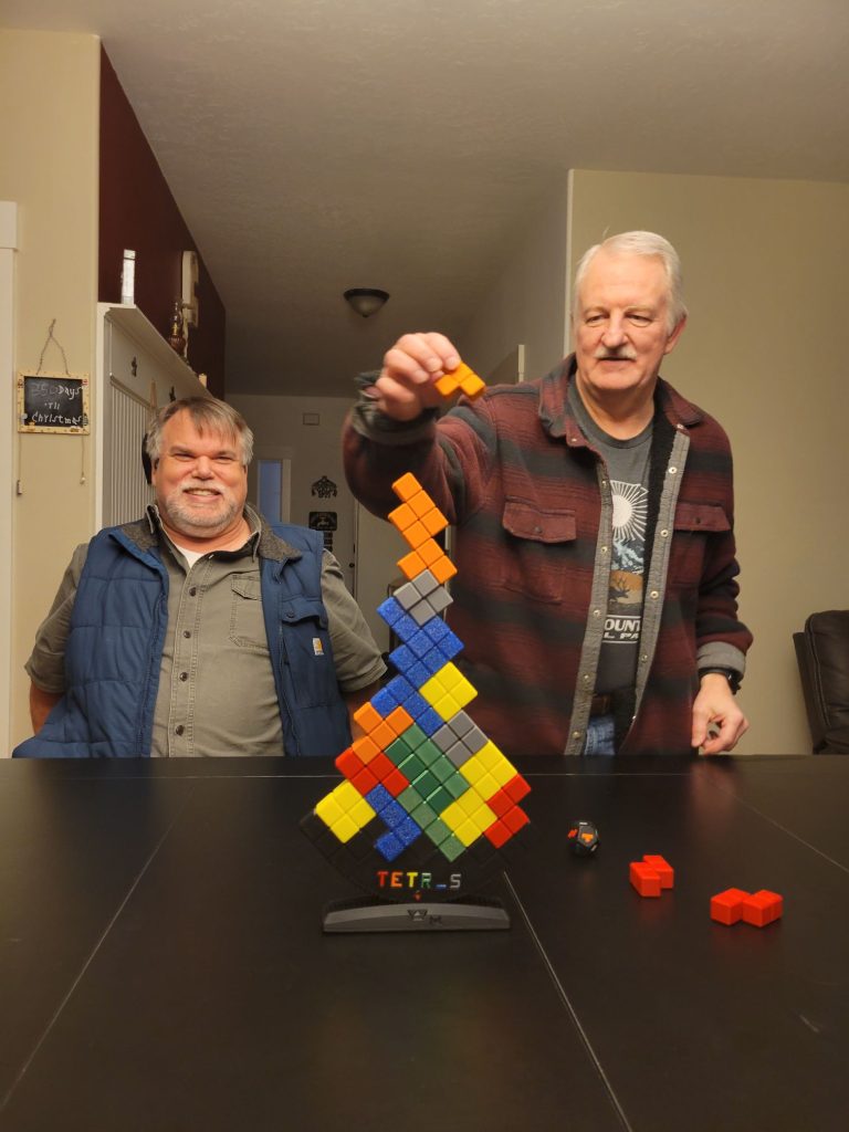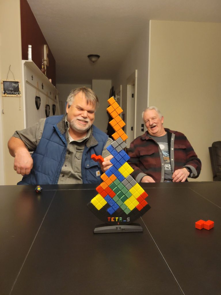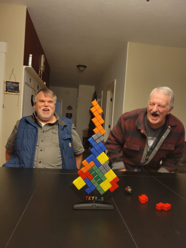 I’ve been hosting a regular game night for the past couple of years or so.  Two of the regular attendies are friends from my childhood, Alan Braithwaite and Dave Clemons. I also invite one of the guys that worked for us when we owned HobbyTown, Phil Harrison. It has been a real blessing for me to be able to hang out with them and I’ve been trying to get more people from church involved.  I 3D printed a game called Tetr_s and we played a few games. As you can see in the pictures, it was quite a bit of fun and I decided to 3D print everyone of my regular players a copy that they could play with their families along with a convient storage case.